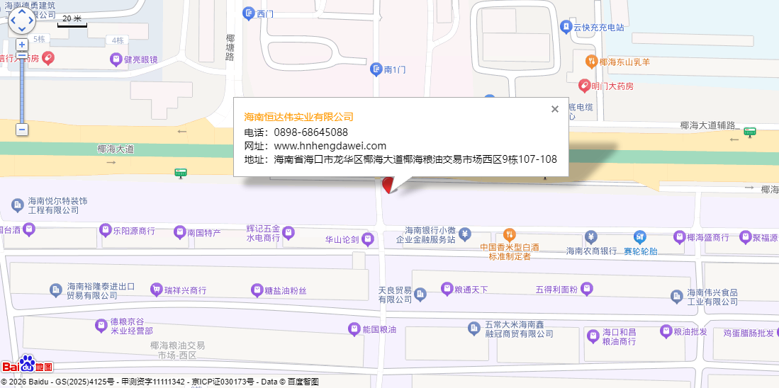 地址:海南省海口市龙华区椰海大道椰海粮油交易市场西区9栋107-108